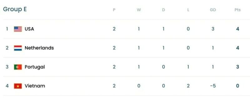 Việt Nam đã chính thức chia tay giải đấu sau 2 trận thua liên tiếp trước Mỹ và Bồ Đào Nha. Ở lượt cuối, Hà Lan sẽ cố gắng đánh bại đại diện Đông Nam Á với tỷ số đậm để tranh ngôi đầu bảng với Mỹ.