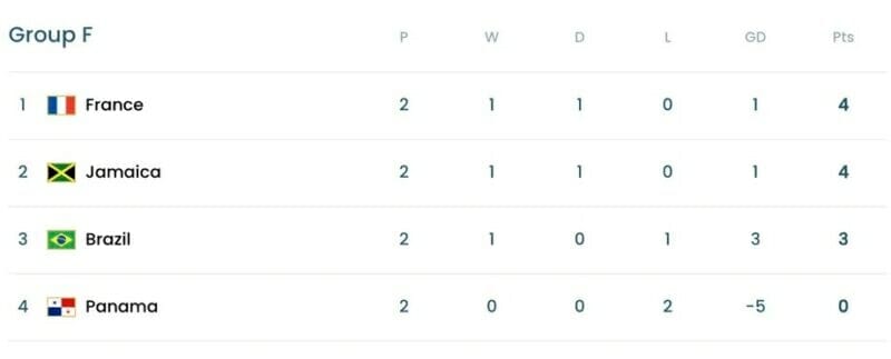 Kết quả giữa Brazil và Jamaica sẽ định đoạt tấm vé tiếp theo. Jamaica chỉ cần 1 điểm là chắc chắn đi tiếp.