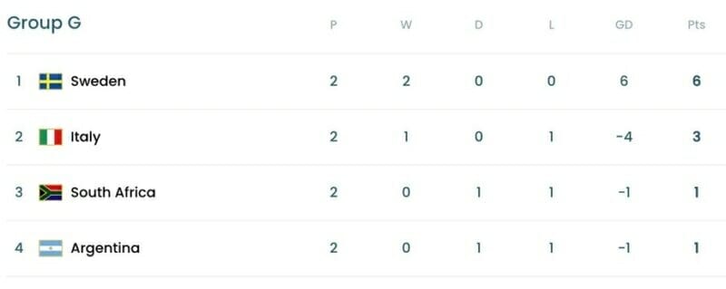 Thụy Điển đã giành được một suất vào vòng loại trực tiếp với chiến thắng 5-0 trước Ý và cũng 99% có được ngôi đầu bảng với hiệu số vượt trội.